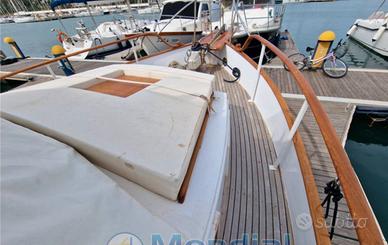 Descrizione Scafo in legno, solo per veri amatori del genere! Combustibili e motori: N° Serbatoi2,Materiale Serbatoiinox,Revisione Motori,Tagliando annuale,Capacità Serbatoi350 litri,Tipo CarburanteDiesel,Tipo Elica3 pale,MotoreFord S842182 1 x 120,Ore di moto 120-TrasmissioneLinea d'asse diretta MATERIALE COSTRUZIONE: ScafoLegno,TugaLegno,CopertaTeak IMPIANTO IDRAULICI Serbatoi Acqua2 x 200 litri,Materiale SerbatoiPolitilene,AutoclavePresente,Tipo Boiler elettrico IMPIANTI ELETTRICI Tensione12/220,N° Batterie2Carica BatteriePresente,Capacità Batterie225 DESCRIZIONE INTERNI Cabina chiusa a prora con letto a V ampliabile con prolunga, Bagno separato con WC marino e doccia interna, Salone con doppio divano contrapposto, Piano cucina lato Sx, Prendisole a prora, Fly-bridge con prendisole, Ampio pozzetto ( rifinito in teak), Pedana di poppa con scaletta bagno in teak. DESCRIZIONE ARMAMENTI Cuscineria interna ed esterna completa nuova 2023 ,Tendalino parasole. DESCRIZIONE STRUMENTAZIONE Pilota automatico, GPS, ECO, VHF, Radio Stereo, TV, Antenna WIFI. NOTE AGGIUNTIVE Motorino d avviamento nuovo,N 2 batterie nuove da 225 Ah,tendalino poppa nuovo,boiler H2O calda nuovo,il tutto estate 2025 Scafo sverniciato a zero nel 2023 trattato con resina epossidica, Motore sbarcato a zero ore nel 2021, Impianto elettrico rifatto nel 2021, Serbatoi gasolio sbarcati e riverniciati nel 2021, Serbatoi acqua nuovi nel 2021, Verricello nuovo 2021, WC marino nuovo 2021. Prese a mare nuove 2023.