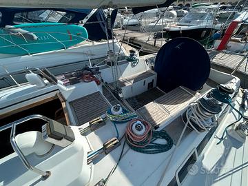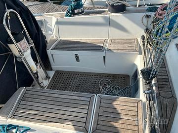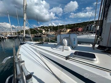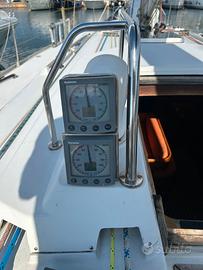 Albero Proctor maggiorato da regata con tre ordini di crocette, boma da regata, vang rigido, avvolgifiocco manuale, trasto scotta randa in pozzetto davanti all'ingresso, timoneria a ruota con consolle portastrumenti, otto winch tutti Self Tailing: quattro in tuga e quattro in pozzetto, tesa paterazzo idraulico NAVTEC, sedute pozzetto e fondo pozzetto in teak. Vele da crociera e da regata, tangone e attrezzatura spy. Negli ultimi anni è stato aggiunto un bompresso amovibile e il gennaker, un bimini-top a poppa.