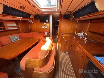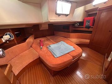Prezzo leggermente trattabile per questo Grand Soleil 45 di German Frers, uno dei modelli di maggior successo realizzato dai Cantieri del Pardo. Elegante yacht per una crociera veloce con 3 cabine e 2 bagni. Nel 2002 è stato completamente refittato: nuovo bulbo in piombo, riverniciato in blu, sostituito il motore Perkins con un VOLVO, installato un bowtruster a prua, sostituite tutte le prese a mare, rifatto l’impianto elettrico. Ogni anno è stata tirata a secco, fatto il fondo e i tagliandi al motore e agli impianti. Ha un albero Proctor con tre ordini di crocette, avvolgifiocco Furlex, timoneria a ruota con consolle portastrumenti, otto winch self tailing, tesa paterazzo idraulico NAVTEC, vele da crociera e da regata, tangone e attrezzatura spy, bompresso amovibile e gennaker, bimini a poppa. Lunghezza 13,94 m Larghezza 4,14 m Pescaggio 2,35 m Dislocamento 12 tonnellate Bandiera Italiana 3 cabine+dinette 6+2 posti letto 2 bagni con doccia motore centrale VOLVO – MD22P – 1994 cm3 – 59 HP del 2002 con circa 3.000 ore Trasmissione linea d’asse con elica Max Prop 3 pale Bowtruster a prua Impianto stereo e altoparlanti Frigorifero+Cucina+Forno Strumentazione Raymarine 8 winch Lewmar salpa ancora elettrico con ancora e 80 metri di catena scaletta bagno+doccia esterna pannelli solari 130W bimini+tendalino albero Proctor maggiorato a 3 crocette randa+genoa da crociera randa e genoa in kevlar ancora buone gennaker e spinnaker rollafiocco + bompresso + lazy bag e lazy jack vang rigido + tendistrallo Navtec