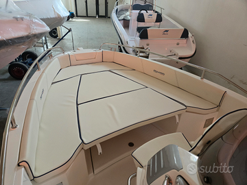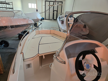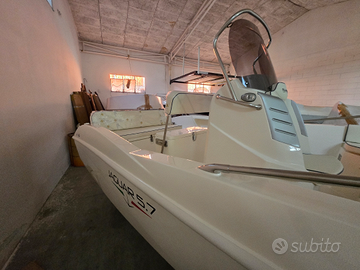 Guarascio group prua al vento Modello jaguar 5.7 se open Lunghezza 5,70mt Larghezza 2,30 mt Peso 620kg Barca di altissima qualità Cuscineria completa Scala bagno larghissima Luci di via,luce360,doccia,tendalino alluminio Pompa di sentina,tromba Serbatoi benzina 93lt con indicatore Possibilità di accessori extra Possibilità di motore nuovo o usato Possibilità di trasporto in tutta Italia Possibilità di posto barca Per qualsiasi info chiamare Gianluca al