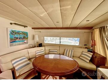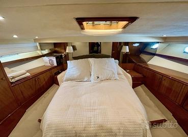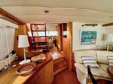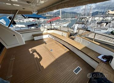 Guy Couach 1800 Fly del 1993 Motori: 2x 820cv MAN (Diesel) con 3600 ore Lunghezza: 17,8m - Larghezza: 5,34m Capacità 20 persone - 3 cabine - 7 posti letto NAVIGAZIONE Trasmissione linea d’asse 2 assi d’eliche nuovi - Scambiatori di calore revisionati Elica di prua - Elica di poppa - Flaps Raymarine HybridTouch AXIOM con camera di controllo motore Pilota automatico Bussola, GPS, Ecoscadaglio, Solcometro, VHF ELETTRICITA E ENERGIA Circuito 220V – Circuito 12V N. 2 generatori Kohler (17 kVA & 8 kVA) N. 2 caricabatterie Inverter Pannello elettrico centrale COMFORT Climatizzatore Illuminazione interna Oblò dotati di tende oscuratrici Cassettone di sicurezza ARREDAMENTO INTERNO (Alta Qualità) 2 cabine matrimoniali – 1 cabina twin (2 letti singoli) Cabina di pilota con accesso independente dalla cabina di pilotaggio a prua Cabina di proprietario in semi-interrato 1 bagno con vasca da bagno - 2 bagni con doccia – Boiler in inox N. 3 WC elettrici Numerosi armadi e cassetti Tavolo per mappe nautiche Angolo interno spazioso Televisore a incastro nel salotto – Antenna - Radio lettore CD Legno, rivestimenti e pavimenti in ottime condizioni CUCINA E ELETTRODOMESTICA Angolo cucina spazioso con isola centrale Cucina a 4 fuochi con cappa Forno e microonde Frigorifero e macchina per il ghiaccio Lavastoviglie Lavatrice - Asciugatrice DOTAZIONI DI POPPA Panche in legno teck Prendisole a poppa Bimini a prua Cuscineria in ottimo stato – Numerose fodere e coperture Cassettone - Corrimano esterno Doccetta (acqua calda) - Serbatoio acque nere Fly bridge con cerchio luminoso Altoparlante esterno Passerella idraulica con rampa Paranco - Cime - Ancora - Salpa ancora elettrico - Winch elettrico Pompa di sentina Posto di pilotaggio: Legno teck nella cabina, cuscini, doccetta, tavolo di pilotaggio, bimini Foto, video e fatture lavori disponibili su richiesta Visibile a Propriano (Corsica) Per informazioni, contattare ROBERTO CARDEO al n. EBC YACHT - Visita il nostro sito!