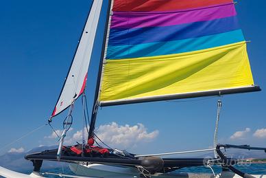Vendesi per passaggio a categoria superiore Hobie Cat 14 piedi versione Turbo, completo in tutti i suoi accessori. Il fioco è stato appena sostituito. Il carrello è compreso nel prezzo