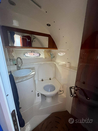 Dotata di Cucina 2 fuochi, forno microonde ,frigo interno, frigo esterno, autoclave, boiler, doccia interna, doccia esterna, radio con lettore cd, 3 televisori interni , faro telecomandato di profondità, tendalino chiusura camper , pozzetto e spiaggina in teak e passerella idraulica besenzoni.
