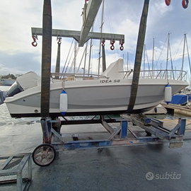 Vendo Idea 58 open anno 2016, motorizzata Selva-Yamaha 100 cv ore moto 470, tenuta maniacalmente, accessoriata per la pesca e comoda per uscite con famiglia. La barca ha i seguenti accessori: doppio strumento, GPS Garmin 5 pollici cartografico con carta nautica, fish finder Garmin Striker 9 pollici Vivid GPS, wifi, clearvù, sidevù, con sonda gt 52 chirp. Stereo Boss Marine nuovo da incasso bluetooth ultimo modello (frontale quadrato), pulsantiera originale nuova. Tendalino inox 3 archi, 2 porta canne da murata + 2 da battagliola + 4 porta canne a riposo per navigazione. Luci led cortesia aggiuntive, luci di poppa led subacquee blu, illuminazione gavone di poppa led, pompa per vasca del vivo con comando sulla pulsantiera. Cuscineria originale nuova + cuscineria vecchia per la pesca, Tavolo con supporto, telo copri consolle originale + coprisedili originali, copri calandra motore, doppia batteria con stacca batteria a ruota, filtro benzina decantatore esterno. Sempre tagliandata e manutenuta con tutta la documentazione dei lavori effettuati.
