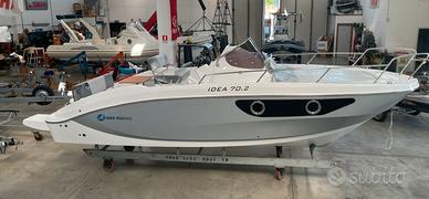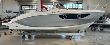 Imbarcazione nuova IDEA MARINE mod. IDEA 70.2 WA con dotazioni std + colore fiancata grey, selleria vogue nichel/nautilus ice, pannello utenze con impianto, fornello nel mobile stand up, WC marino con serbatoio acque nere, tromba elettrica, 6 luci led di cortesia (4 gradini+2 pozzetto), plancetta di poppa in vetroresina con motore nuovo YAMAHA mod. F200XCC completo di chiesuola e LCD5". Prezzo di listino ? 79.300.offerta con possibilità di permuta ed è eventualmente finanziabile