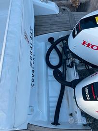 Idea 80 Walk Around, anno 2024. Spaziosa e versatile, ampio prendisole a prua e pozzetto modulabile grazie ad un comodo divano e sedute laterali a scomparsa. Internamente troviamo una cabina con letto matrimoniale, bagno con doccia in locale separato e WC marino e due posti letto aggiuntivi. Lunghezza 7.99 mLarghezza 2.54 m Motori: 2x150hp Honda Ore moto 100 Ultima revisione 2025 Velocità di crociera 30 nodi Velocità massima 42 nodi Serbatoio carburante 280 l Serbatoio acqua 80 l Accessori:GPS Garmin Plotter; ECO 9 pollici Garmin; VHF; Flaps Lenco; Verricello elettrico; Elica di prua; Impianto stereo Fusion RA60; Hard Top inox e vtr; Luci led cortesia; Boiler acqua calda; Prese 12Vcabina e console; Impianto caricabatteria con presa in cabina; Frigorifero; Teli seduta schienale e console; WC marino; Serbatoio acque nere; Plancette di poppa. OTTIME CONDIZIONI Tutti i contenuti (caratteristiche, metrature, accessori, ecc. ) degli annunci sono puramente indicativi, potrebbero contenere imprecisioni o errori, pertanto non comportano nessun vincolo contrattuale. Per garantire la privacy, l'indirizzo può non rispecchiare esattamente l'ubicazione del natante ed è utile al solo fine di fornire un riferimento generico per la sua localizzazione ed un ausilio alla consultazione. Il prezzo è soggetto a mediazione agenzia. Gli acquirenti hanno diritto di ispezionare personalmente l'oggetto e/o di sottoporre il natante a perizie a loro spese, il mediatore non può essere considerato responsabile delle probabili inesattezze qui riferite. Consigliamo di visionare sempre l'oggetto prima dell'acquisto.