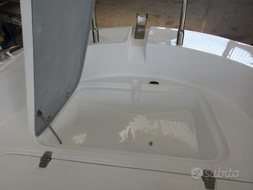 Open spazioso, rapporto qualità/prezzo imbattibile, curato nei minimi particolari, il peso di 700 kg , la larghezza di 2,40 mt e le murate alte gli conferiscono stabilità, doti di navigazione e robustezza uniche nel suo genere