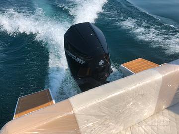 La motorizzazione ideale è il Mercury F225 V6 con manette elettroniche e correttore d'assetto automatico (Active Trim), 40 nodi di pura adrenalina!