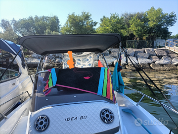 Vendo barca idea 80 wa anno 2023 super accessoriata con 2 motori 150 Yamaha ore moto 250 ... frigorifero, fornello esterno sotto sedile ,roll-bar originale,flap elettrico, ancora acciaio,stereo e casse hertz marine,