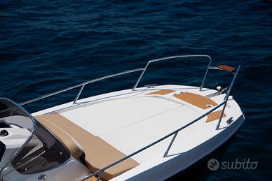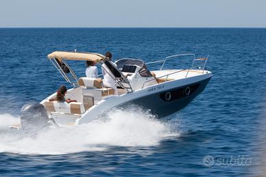 Un Day Cruiser dal design sportivo, un prendisole a prua con schienale, CABINA e un pozzetto di grandi dimensioni arricchito da due sedute laterali a scomparsa, fanno della IDEA 70.2 WA la barca perfetta per tutti gli utilizzi in mare. La cabina ad altezza uomo permetterà di avere una zona relax, impreziosita da un letto a 2 posti con cuscineria di elevata finitura e da un comodissimo bagno separato completo di lavello.