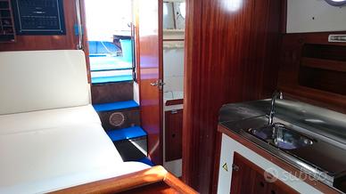tre posti letto, wc, cucinino, frigo, doccia, tendalino, lunga 10 metri con ampia piattaforma bagno, cuscineria sia a poppa che a prua, moquette vinilica.