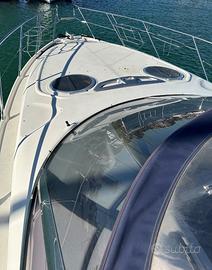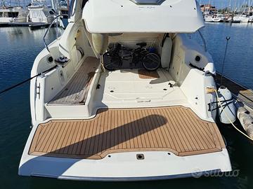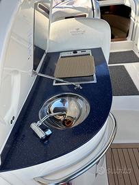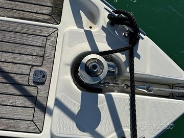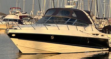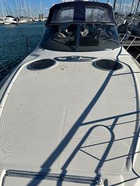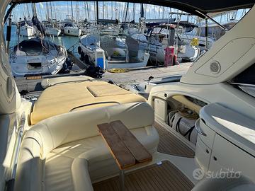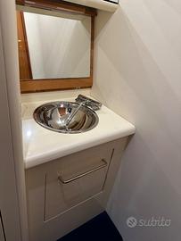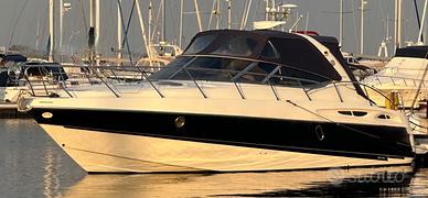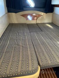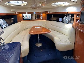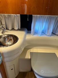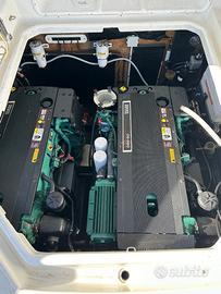 Imbarcazione a motore in buono stato di conservazione ,due motori EFB Volvo Penta 350 HP cadauno,630 H circa, cabina matrimoniale a poppa con lavandino, tavolo abbattibile in dinette per altri due posti letteraria condizionata, generatore,elica di prua, tender garage ,plancetta di poppa in teak sintetico rifatta nel 2024,salpancore elettrico