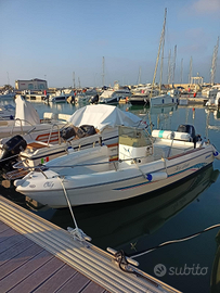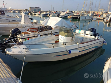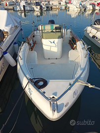 kEY LARGO 18 della Sessa Marine srl. Lunga 5,22 per 1,73 tonnellate di stazza. Portata max 6 persone. Motori fuori bordo: Mercury 29 kw e Honda 1 ,7 kw entrambi 4 tempi benzina. 6 parabordi razzi, tavolino, copribarca, ecoscandaglio Garmin, 6 giubbotti di salvamento, salvagente omologato cuscinerie.