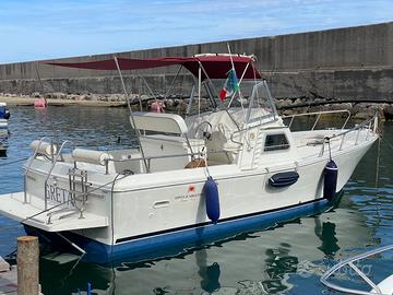 COSTA D'ARGENTO 740- anno 2001 Motorizzazione entrobordo linea d'asse VM HP 250 turbo diesel 6 cilindri-Trasmissione V-Drive -Verricello Elettrico - elica di prua -WC Elettrico in Ambiente separato - Frigo - Centralina Elettroidraulica Flaps - Capacità Acqua L. 240 - Capacità Carburante L.240 - 2 Batterie 100 Ah Nuove - velocità' crociera 22 nodi-velocita' massima 30 nodi-consumi 20/25 LT/h-tendalino plancia,poppa - cuscinetta come nuova- dotazioni complete-zattera entro 12miglia anno 2025 Barca tenuta in modo maniacale, custodita in Capannone per inutilizzo per 152 anni, acquistata dal sottoscritto con 80 ore di moto, attualmente con 480 ore di moto