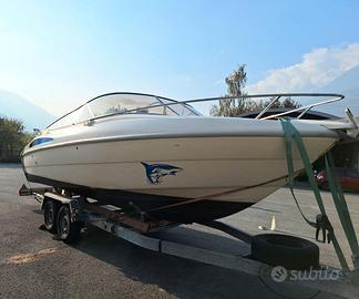Imbarcazione a diporto: stato usata ma ben tenuta, motore AB Volvo Penta modello 5.0Gi, cilindrata 5069, anno fabbricazione 1999, tipo entrofuoribordo, potenza fiscale cv 37 massa kg. 449 Rimorchio: marca ELLEBI LBN 2020 A, lunghezza mt 8.350 larghezza mt 2.120, usato ma ben tenuto, adattato per l'imbarcazione sopra indicata, immatricolato il 14.05.2003, il rimorchio può essere trainato da autoveicolo con gancio a sfera e giunto elettrico con installazione approvate e caratteristiche compatibili con massa complessiva e larghezza sopra indicate. Attrezzato per trasporto imbarcazioni.