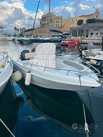 Imbarcazione Blu&Blu di 5.50 metri in resina completa di cuscineria, ecoscandaglio, tendalino in acciaio, doccetta, pompa di sentina, tavolini, stereo e casse di serie, Motore 115cv Mercury 4 tempi del 2008 a bassissimi consumi (700 ore di moto). Manutenzionata interamente da pochi mesi. La barca è in acqua per qualsiasi prova. Prezzo trattabile.