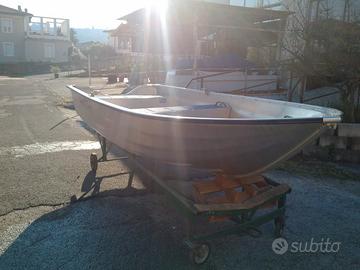 In vendita barca in alluminio, Linder Sportsman 400, Nuova, mai entrata in acqua, con coppia di remi ancora nel cellophane in omaggio. Ereditata causa prematura scomparsa del proprietario prima del varo. Il prezzo del modello da rivenditore si avvicina ai 5.000 euro, spese escluse. Cedesi a 3.500 euro trattabili.