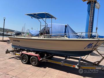 Imbarcazione Marino 570 in ottime condizioni perfettamente funzionante corredata di ecoscandaglio, T-top, tendalino, serbatoio acqua dolce con doccetta, due batterie, frigorifero, autoclave, pompa di sentina.