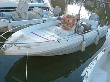 Vendesi imbarcazione mt. 5.65 con motore Yamaha 100 cv. con circa 600 ore di navigazione, completo di cuscineria, pannello solare, 2 batterie sostituite nel 2024, 2 pompe di sentina, pompa presa a mare, ecoscandaglio e GPS Humminbird Helix 9, motore di rispetto Mercury 4 cv. acquistato nuovo nel 2024.