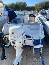 Sedute imbottite sia a prua che a poppa, in buono stato. Postazione di guida con parabrezza avvolgente. Gavoni capienti per attrezzatura e dotazioni. Tientibene in acciaio inox su tutto il perimetro. Plancetta di poppa con facile accesso all'acqua. Scafo in vetroresina in condizioni generali buone.