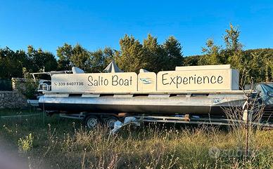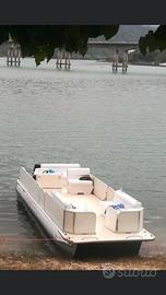 Imbarcazione 7,50 m per 2,50 m. Scafi in alluminio. Portata 16 persone. Motore mercury pro 40 ottimo stato con poche ore. Cuscineria in ottime condizioni, impianto elettrico e stereo nuovo, pannello solare mantenimento. Ottimo e comodo mezzo per attività di noleggio o per uso personale. Prezzo richiesto 18.000 tratt. 3398407736