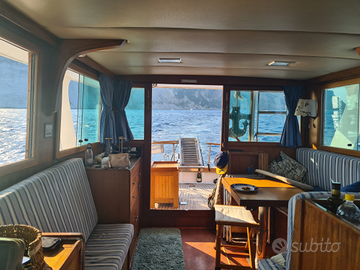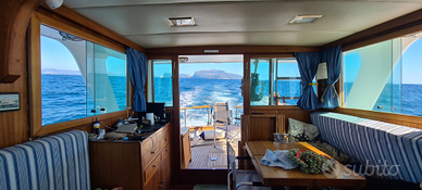 Navetta in legno di mogano di 50 piedi. Due motori Volvo penta 240 cv. Camera armatoriale e camera ospiti con letti sovrapposti. Bagno con vaso e bide oltre a comodo lavandino. Cucina casalinga e lavello a due vasche. Altdrnatore x batterie servizi indipe de ti e pacco bagterie x servizi 220V con relativo caricabatteria ed alternatore. Fly abitabile e molto comodo. Spiaggetta ampia.