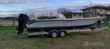 Vendo barca cantieri Sfriso modello 750 ( cantieri NordEst ). La barca si presenta come in foto, ha un bracket che la porta fuori tutto a 8,10 metri. Come attrezzature ha 2 verricelli da 1700 della Quick nuovi, cime in dyneema, due serbatoi separati, due pompe di sentina ed una con macinatore per la coperta ecc. Gli alberi di sollevamento (fatti per la pesca delle vongole ) sono abbattibili con ganci a pellicano per farlo velocemente e facilmente. La barca non è immatricolata, è ad uso diporto, quindi non necessita di essere fatturata. Vondo solo l'imbarcazione, no motore, vaglio, tramoggia e pompa. Ho la possibilità di trasportarla via terra, come vedete nell'ultima foto.
