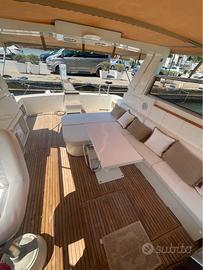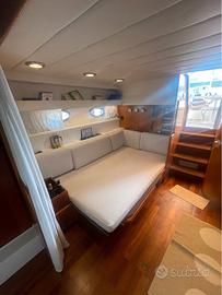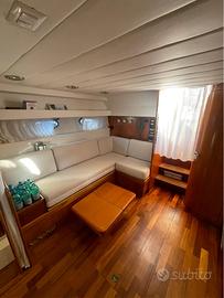 Altoparlanti, Boiler, Cappottina Sunbrella Plus, Clima reversibile (Peltech) da ripristinare, Copripozzetto Sunbrella Plus, Tenda parasole a prua con n. 4 pali in acciaio, Cucina, Cuscineria completa (In ottimo stato), Digitale Terrestre, Frigorifero interno (Doppio), Impianto TV, Pavimento interno in legno, Piastra in vetroceramica (2 fuochi), Prese interne 12 V, Prese interne 220 V, Stereo (Fusion), smart TV, WC marino elettrico.