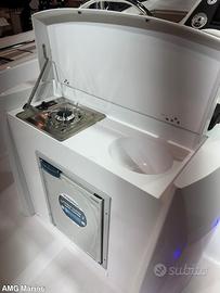 Accessori standard: Luci di via, pannello elettrico, impianto elettrico, pompa di sentina, impianto doccia con autoclave e serbatoio 30 lt
