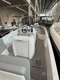 Infinity Milano CC20 GT Unica nel suo genere prodotta in Italia, consolle cenntrale con sedura stand/up divano a poppa, ampio prendisole di prua tasformabile in dinette. Gli accessori istallati di serie: verricello elettrico con musone di prua, luci di via pompa sentina impianto doccia impianto carburante tappezzeria completa scaletta di risalita, timoneria idraulica. Prezzo listino euro 31.000,00 iva esclusa AMG Marine Concessionaria Infinity Milano AMG Marine Concessionaria Ufficiale Bavaria Yachts, Italmar, Romar, Mercury, Suzuki, Conarg Marine, Cresci Rimorchi, Spoleto Rimorchi, Garmin. Via Aurelia 2935 Torreinpietra 0054 Fiumicino Roma Tel