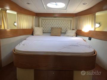 A prua vi è la cabina armatoriale, arredata con ampio letto matrimoniale, armadio a tre ante, cassettiera sotto il letto, piccolo armadio a due ante e uno specchio a parete.