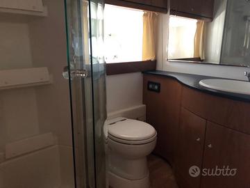 Dalla cabina armatoriale si accede direttamente al bagno privato, completo di lavabo, WC e box doccia con idromassaggio. A poppa la cabina del marinaio con servizi.