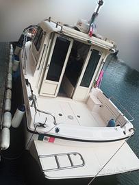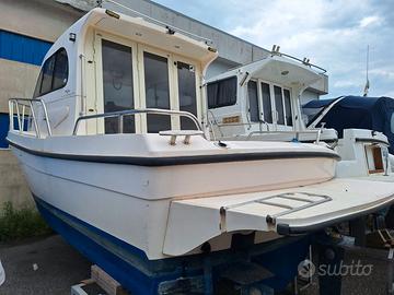 Intermare 25,Anno 2000, Lunghezza 7,20 m, Lunghezza f.t. 8,26 m, Larghezza 2,65 m, Dislocamento 3,68 t, Numero massimo persone trasportabili: 8, Portata massima: 800 kg, Cat CE: B, Serbatoio carburante 345 l, Serbatoio acqua 80 l, Velocità crociera 19-20 nodi, Consumo a velocità crociera 35-40 lt/h, Velocità massima 26 nodi. Disposizione interni: 2 posti letto in cuccetta, Dinette trasformabile. Cucina con lavello e due fuochi. Bagno in locale separato con wc marino. Impianto elettrico rifatto 2023. Motori: 2x140hp YANMAR, serie 4LH-HTE. Anno 2000, Ore di moto circa 1600, Regolarmente tagliandati Invertitori ZF marine, Raiser nuovi Agosto 2024 Turbine nuove da installare Agosto 2025 Accessori: ECO/GPS Raymarine, Antenna radar, VHF, Cuscineria interna nuova, Cuscineria esterna nuova, Pompa sentina nuova, Frigo nuovo, Autoclave nuova, Impianto tergicristallo nuovo, Sentina manuale, Mantenitore batterie nuovo, 3 batterie da 100 A, Letto basculante, 2 tavoli (uno interno e uno esterno), Telecamera posteriore in pozzetto, Aspiratore vano motori, Presa per mulinelli elettrici, Doppi comandi, Doppio timone, Pompa lavaggio con acqua di mare, Salpa ancora elettrico, Flap elettrici, Delfiniera apribile, Doccetta esterna, Vano porta zattera, 2 portacanne fissi, Panche apribili nel pozzetto, Attacco 220v in banchina. AL MOMENTO IN CANTIERE PER PREPARAZIONE Tutti i contenuti (caratteristiche, metrature, accessori, ecc. ) degli annunci sono puramente indicativi, potrebbero contenere imprecisioni o errori, pertanto non comportano nessun vincolo contrattuale.Il prezzo è soggetto a mediazione agenzia.Gli acquirenti hanno diritto di ispezionare personalmente l'oggetto e/o di sottoporre il natante a perizie a loro spese, il mediatore non può essere considerato responsabile delle probabili inesattezze qui riferite.Consigliamo di visionare sempre l'oggetto prima dell'acquisto.