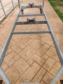 Invaso professionale in lamiera zincata, molto robusto, dotato di 4 ruote piroettanti da 25 e n. 4 supporti regolabili con viti in acciaio. Misura struttura 130 X 400