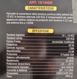 Articolo indispensabile su veicoli come imbarcazioni, fuoristrada, camion, camper, consentendo l'uso dei più comuni elettrodomestici durante le vostre vacanze e gite fuori porta.