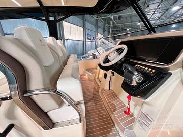 Anno 2021 . motori EFB 2x350 benzina volvo penta. - Accessoriata con: plancetta affondabile 300 kg, generatore, aria condizionata 1200 BTU, hord top in carbonio- 1 Matrimoniale italiana, 1 Cucina, 1 dinette trasformabile , 1 Toilette doccia. il letto matrimoniale prodiero e la seconda cabina tripla a centro barca, con una cuccetta a una piazza e mezza e una singola. Allarme motore, Autoclave, Batterie, Bussola, Colorazione speciale (fiancate metalizzate cognac), Doccia esterna, Ecoscandaglio, Elica di poppa - stern thruster, Elica di prua - bow thruster, Flap elettrici, GPS (plotter fish/finder map8412 XSV Garmin con trasduttore), Hard top (in carbonio), Impianto antincendio, Luci di cortesia, Pompa di sentina automatica, Presa 220V banchina, Presa acqua banchina, Raddrizzatore, Radio VHF (300 Garmin), Salpa Ancore Elettrico, Scaletta da bagno, Tavolo pozzetto, Tromba Aria condizionata, Boiler, Copripozzetto (telo ombreggiante poppa), Cucina, Cuscineria completa, Frigorifero esterno, Frigorifero interno, Piastra in vetroceramica (induzione), Prese interne 220v, Riscaldamento, Stereo, Tendalino (telo copriscafo), WC chimico