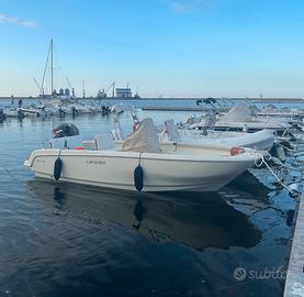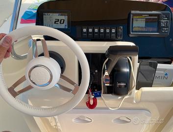Accessoriata con tendalino retraibile, navigatore Garmin touchscreen e motorizzata con un nuovissimo Yamaha 40/70 del 2023, performante ed affidabile, con 100 ore di utilizzo ed un consumo contenuto, che, oltretutto, non necessita di patente nautica.