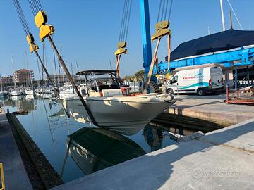 CANTIERE: INVICTUS CAPOFORTE MODELLO: FX270 ANNO: 2023 MOTORIZZAZIONE: 1X350 SUZUKI ANNO 2018 (540 ORE) DIMENSIONI: Lungh. 7.99 MT - Largh. 2.36 MT Allestimento - Frigo igloo 95 lt -2 prese 220 volt - Prendisole a prua parziale - Ecoscandaglio - Tromba - Soft T-TOP alluminio nero - Tavolo a prua in teak - WC elettrico - Spiaggette di poppa - Pompa sentina - Verricello elettrico - Tendalino sole a poppa con pali carbonio - Gps Garmin 923xs 9 pollici -Kit chiusura frontale cristal - Comando leva elettronico - Box fisherman di lavoro con lavello e vasca con ossigenatore -Impianto acqua salata in pozzetto -Porta canne plexa in murata - Scaletta bagno - Luci di via - Flaps - Presa usb+presa 12 volt - Luci pozzetto - Elica di prua Vetus -Doccia Esterna -Batterie nuove 2025 -Cambiato piede 2025 Difettoso PER AVERE MAGGIORI INFORMAZIONI! Eugenio 346,7820348 NAUTICA YACHTING - NAUTICA PEZZOTTI LOMBARDIA - ISEO (BS) VENETO - CAORLE (VE) FRIULI - LIGNANO SABBIADORO (UD)