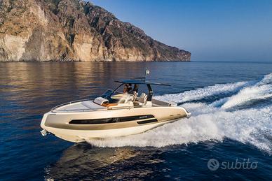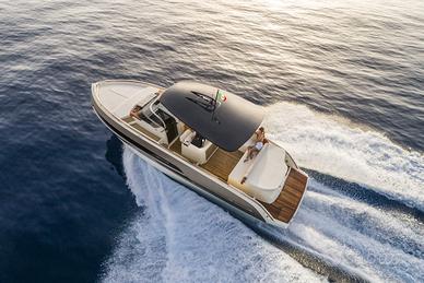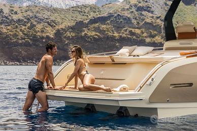 Il famoso Design Christian Grande presenta linee filanti, un parabrezza avvolgente e l'iconico tientibene ovale che corre lungo la murata. Lunghezza 9,95 m e omologata per 12 passeggeri. Il T-Top è realizzato in carbonio infuso. Il layout "social" è caratterizzato da un'ampia area pranzo con cucina all'aperto, poltrone di pilotaggio ergonomiche e prendisole sia a prua che a poppa. Sottocoperta offre una cabina armatoriale a prua, un salone trasformabile e un bagno separato con doccia, rifiniti con materiali di pregio personalizzabili. Accessori; Hard-Top nero in fibra di carbonio, Teak plancetta e pozzetto, Frigorifero pozzetto, Garmin GPS MAP, Kit Elica di prua, Upgrade impianto Hi-Fi fusion.