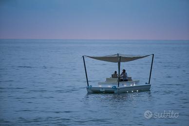Si tratta di una struttura galleggiante, progettata e realizzata in vetroresina, che può essere utilizzata per relax, eventi e come estensione di complessi ricettivi ed a uso privato con motore elettrico per il posizionamento e navigazione