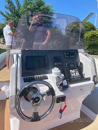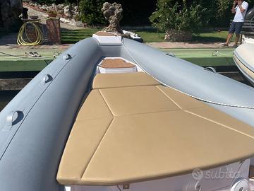 Splendido Gommone del 2021 di uno dei migliori cantieri Italiani. Come nuovo, sempre rimessato tagliandato annualmente. Motore Honda 250 con 250 ore di moto. Armamenti e strumentazione : Bussola, Contamiglia, Display, Ecoscandaglio Gps Cartografico , radio con 4 altoparlanti prua e poppa,LED sul camminemento, Radio, VHF (Raymarine e antenna GPS), Sedile Copilota (re-clinabile per guida in piedi o da seduti), Ancora (e catena in acciaio inox con supporto ancora), Autoclave, Batterie, Bitte reclinabili a poppa ,Doccia esterna, Piattaforma, Pompa di sentina automatica, Pompa di sentina , Rollbar (con luci di navigazione), Salpa Ancora Elettrico, Scaletta da bagno (telesco- pica), Tavolo in Vetroresina ,Tromba, Prese interne 12v, WC marino elettrico (con serbatoio di recupero acque nere) posto in comodo vano sotto consolle. Altoparlanti, Radio,Congelatore, Frigorifero esterno (a cassetto 50/60 It in acciaio inox), Bimini (top inox), Cuscineria completa, Cuscineria di poppa, Cuscineria di prua, Prendisole aggiunto (a poppa), Telo copriconsolle, Telo Copricuscini Guida, Consolle di guida con parabrezza oscurato, Verricello Elettrico con comandi in plancia, Lavello in acciaio Inox. Stacca batterie separati motore/servizi.