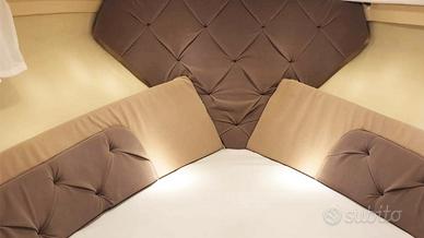 divisoria con luce di cortesia. Locale toilette separato con wc elettrico marino lavello con rubinetto estraibile, doccia, specchio, lavabo esterno con rubinetteria e vano porta