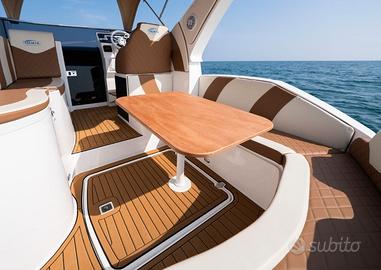 Possibilità di aggiungere e personalizzare gli optional, motorizzarla con coppia di suzuki DF200AP e fornirla pronta alla navigazione chiavi in mano con soluzioni Elettronautica Oberto ad hoc.