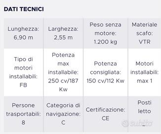 Motore: fuoribordo (max 250 CV - consigliato 150 CV)