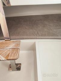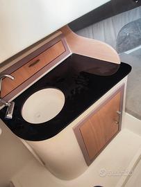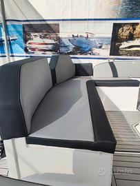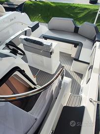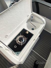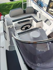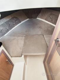 Volante con timoneria monocavo, tromba, bussola, stacca batteria, luci 360°, pulpito acciaio, parabrezza in plexiglass, n. 4 bitte, n. 3 ganci alaggio, luci di navigazione, cuscineria interna ed esterna, pompa sentina, pannello interruttori, passo uomo, porta ingresso cabina, scaletta agno, kit lavabo con rubinetto con fornello ad un fuoco, autoclave con doccia serbatoio acqua 60 lt., vano toilette separato, wc elettrico, luci cortesia in pozzetto, impianto stereo con 4 altoparlanti, impianto doccia esterna, frigo, salpancora elettrico, tendalino inox, serbatoio carburante 150 L., 2 oblò in consolle, 2 oblò in carena.