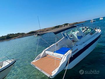 JAENNEAU PERFORMANCE mt.7,50 con motore omc cobra 220 cv. benz. perfetto con poche ore di moto rimessato consuma pochissimo acessori : salpa ancora elettrico con telecomando, flaps idroelettrici , doccia con acqua dolce, fornello,con lavello acqua dolce ,impianto stereo, 4posti letto, ecoscandaglio gps cartografico, wc, scaletta scesa in mare a scomparsa, 2 batterie nuove, tappezeria prendi sole nuova con tavolino, euro 17000 la barca e carrelabile con possibilita anche di carello doppio asse prezzo a parte