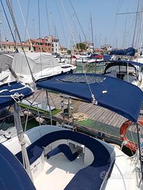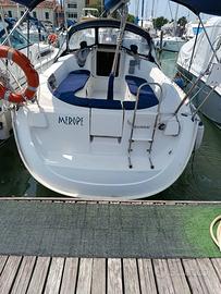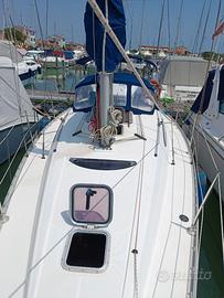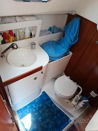 Barca a vela in ottime condizioni, facile da manovrare e di grande confort, sempre manutentata professionalmente. Motore "Yanmar 2GM20 20cv", entrobordo diesel, trasmissione linea d'asse. Strumentazione elettronica: gps, log, pilota automatico, stazione del vento. Allestimento tecnico e di coperta: autoclave, 2 batterie, pompa di sentina (manuale ed elettrica), pozzetto in teak, scaletta da bagno, supporto motore fuori bordo, winch. Dotazioni domestiche di bordo: boyler, prese interne 12 volt/220, wc marino manuale. Vele: avvolgi fiocco, code 0 con frullone nuovo., randa. Tappezzeria: tendalino e sprayhood. Interni: 6 posti letto, 2 cabine, 1 bagno, dinette, angolo cottura con frigo.