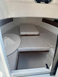 La barca presenta un'ampia cabina matrimoniale completa di cuscineria, con oblò e porta scorrevole.
