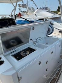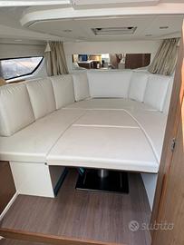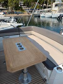 Tavolo nel pozzetto in teak con gambe regolabili Cuscineria spiaggetta prendisole di poppa