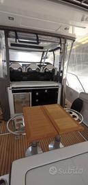 Cap Camarat 10.5 WA S2 del luglio 2024, motorizzato Yamaha F300 NSB WHITE (manetta e sterzo elettronico), autopilota ,JOYSTICK, 48 ore di moto, (cuscinerie interne ancora negli imballi originali), Hard Top con parabrezza basso, versione con cabina di poppa separata con porta. Imbarcazione molto accessoriata : "ALLESTIMENTO PREMIERE : - Verricello elettrico , ancora e catena, comando verricello in consol, cuscini del pozzetto di prua - Circuito 220V + caricabatteria, scaldabagno - Frigorifero 75LT in cucina - Flaps automatici Zipwake -Tappezzeria quadrato e cabina JAMBO PURE - GARMIN GPSMAP 1223 XSV con trasduttore di poppa , VHF. -Stereo FUSION RA70N + 4 altoparlanti -Sedile ribaltabile laterale DX -Tendalino parasole pozzetto , kit chiusura T TOP, KIT coperture. -Teak in pozzetto e sulla plancetta ampliata e terrazza laterale, tavolo a poppa in teak telescopico trasformabile in prendisole. -Frigorifero e lavello esterno. -Doccia separata in bagno, WC elettrico ad acqua dolce e vasche nere, dinette a prua trasformabile in letto e letto di poppa matrimoniale. -Tergicristallo parabrezza con lavavetro, tromba, elica di prua, -Passerella idraulica BESENZONI.